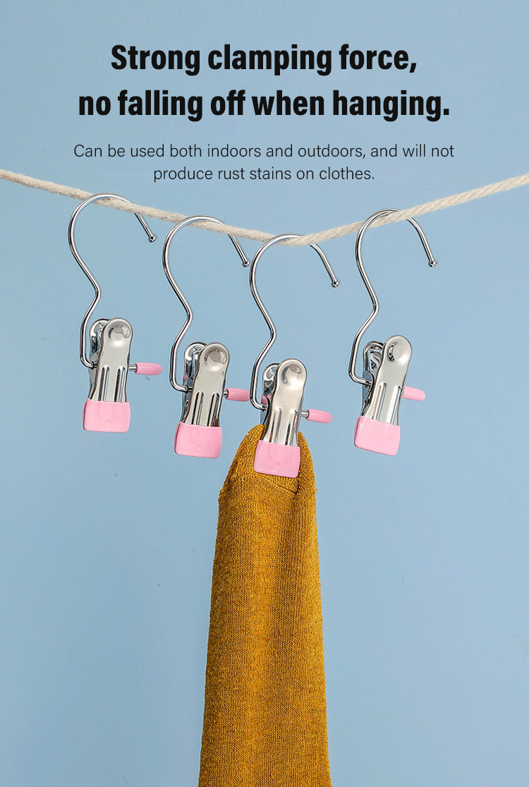 Multi-functional stainless steel clothespins 🥰Won't damage clothes during use 🌈Can hold clothes, shoes, hats, rags, gloves, etc.